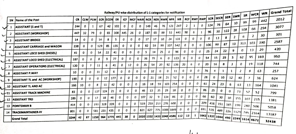 Indian Railway RRB group D Vacancy 2025: Total Post by Category